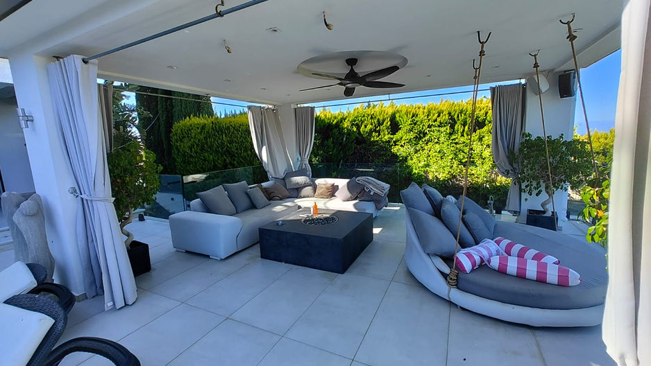 Experience the height of Mediterranean sophistication with this contemporary luxury villa nestled in the serene hills of Arapkoy. Perfectly positioned to capture panoramic sea and mountain views, this home combines cutting-edge technology, refined architecture, and exceptional comfort. Spacious open-plan living areas are filled with natural light through solar-reflective glass doors and windows, creating a seamless connection between indoor elegance and the stunning outdoor landscape. Every room has been thoughtfully designed to balance functionality, beauty, and tranquillity.